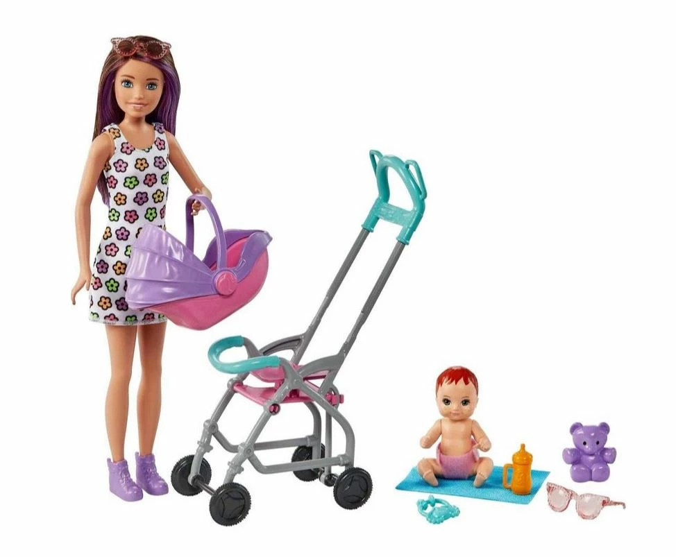 Barbie Skipper Babysitters Inc. playsets let imaginations explore their nurturing side as the babysitter. With this playset, kids can help Skipper babysitter doll care for a baby doll in an adorable stroller that bounces up and down as it’s pushed!