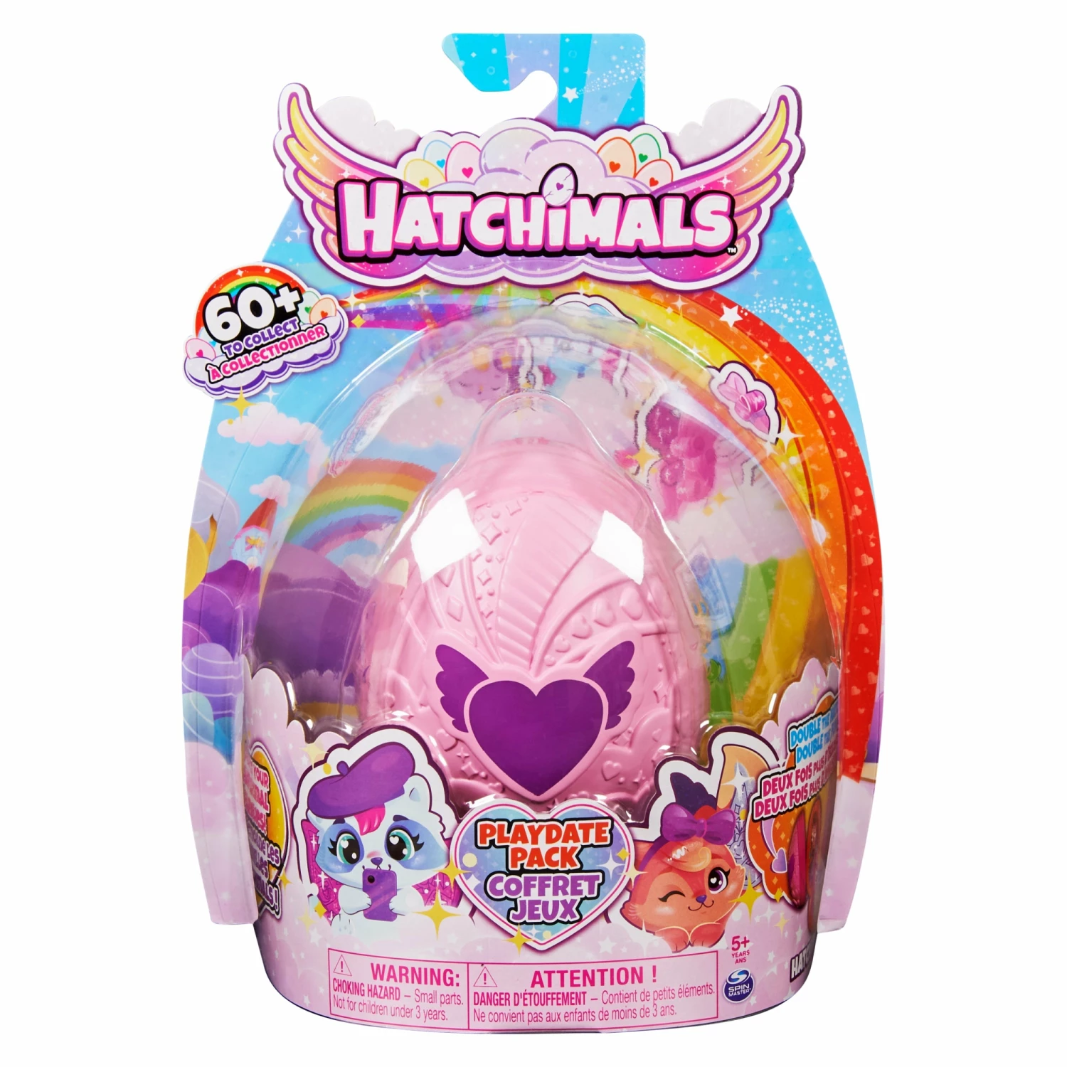 Every Playdate Pack features an egg with a unique double-sided hatch, three Little Kids, one Baby and two accessories. These packs are the only place youll find Hatchimals from different families! After discovering your characters, the egg transforms into a 2-story play area for your playdate.