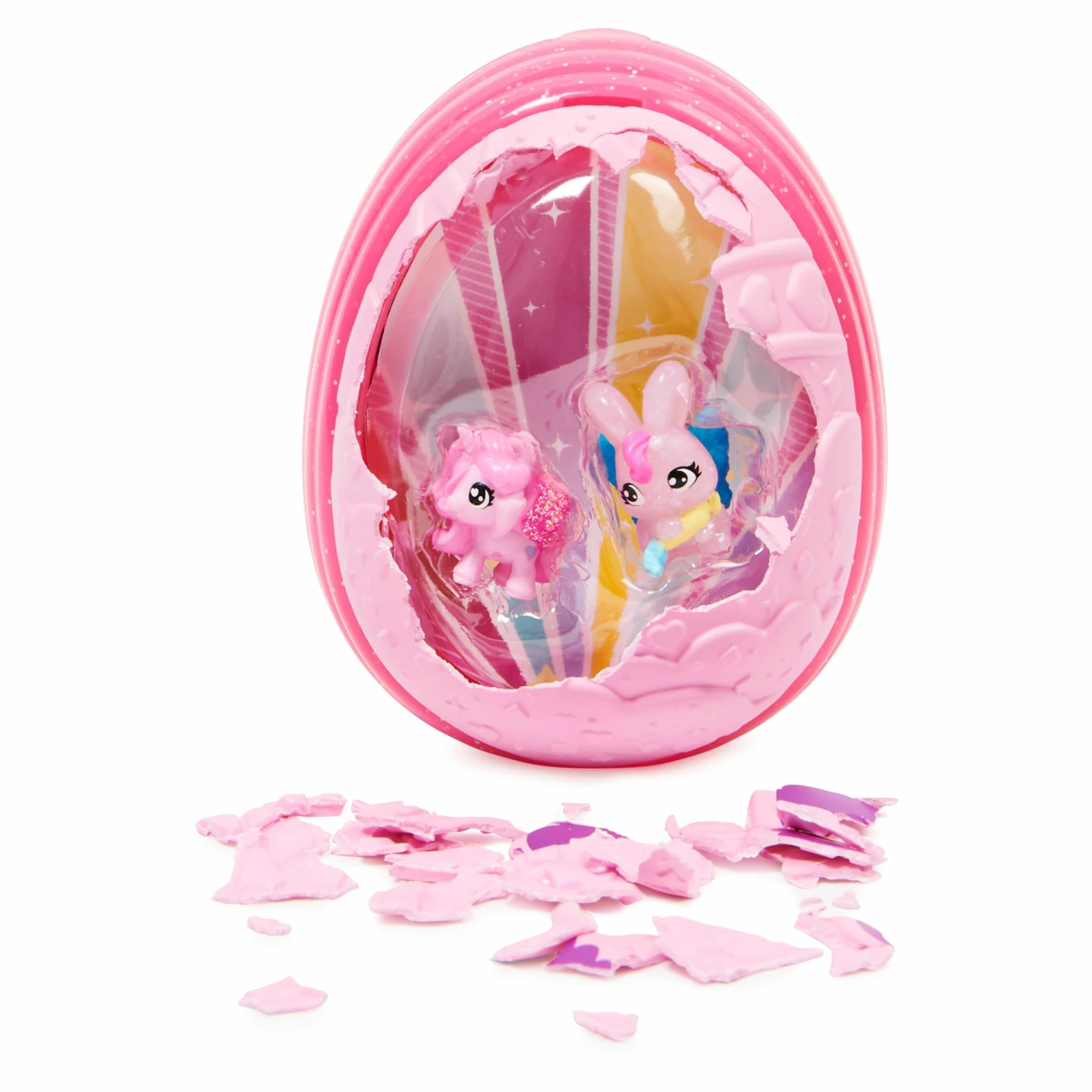 Open the eggs interior to reveal your playdates surprise theme! You could find a relaxing spa, movie theatre, roller rink, ice cream shop and more! Which playdate will be your favorite? To hatch your playdate, crack the front of the Hatchimals egg to find two Little Kids, then crack the other side to find another Little Kid, an accessory and the packs sweet Baby!