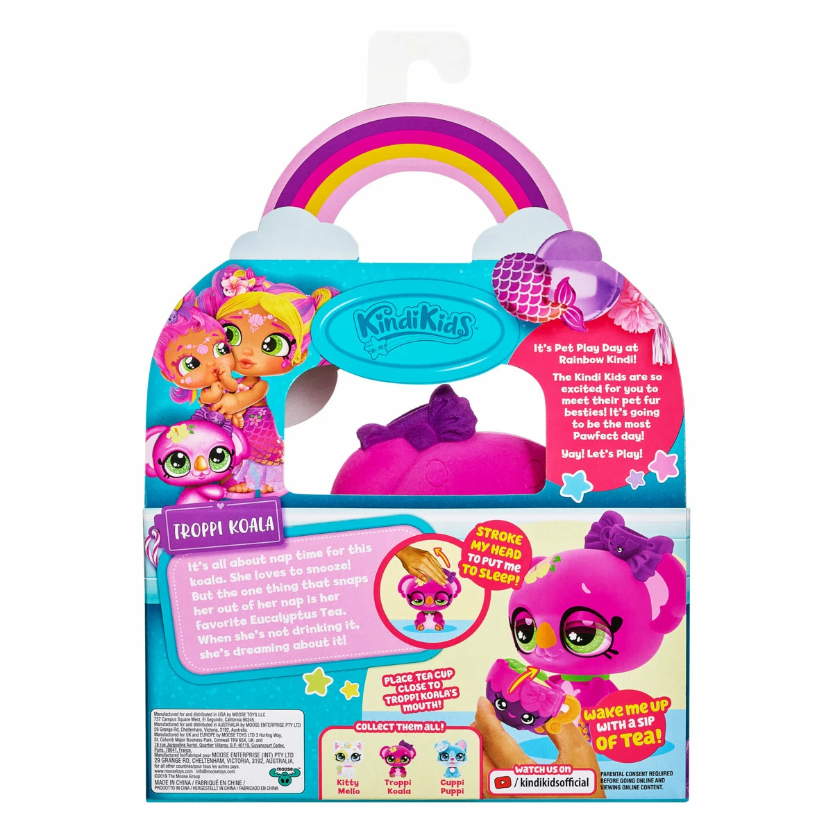 Meet Troppi Koala. Kind Kids – Tulla Tropics and Tropicarla’s cute new Party Pet! It’s Pet Play Day at Rainbow Kindi and these Kindi Kids are so excited for you to meet their new pet fur bestie! Troppi Koala is a cute little pink pet who loves to snooze.