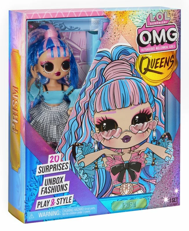 So, let’s welcome to the throne: Prism! Unbox 20 surprises with LOL Surprise OMG Queens fashion doll Prism including majestic fashions and royal themed accessories. Prism rocks to the beat of her own drum. This Queen is articulated which helps when she’s rocking out on stage.