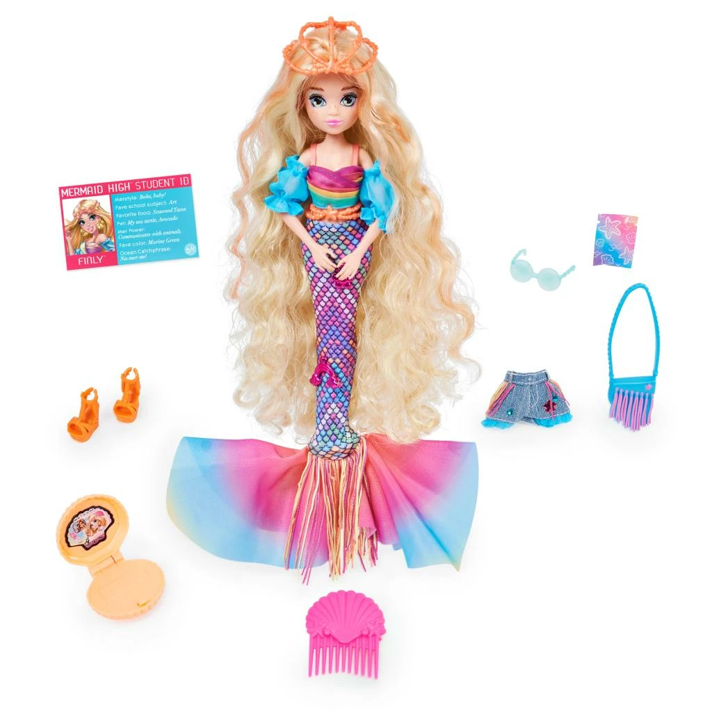 Collect all the deluxe Mermaid High toys (dolls each sold separately) and experience fins, fashion, and friendship as deep as the ocean! These mermaid dolls are intended for pretend play and are not suitable for use in water. Make a splash at Mermaid High with the deluxe Finly doll!