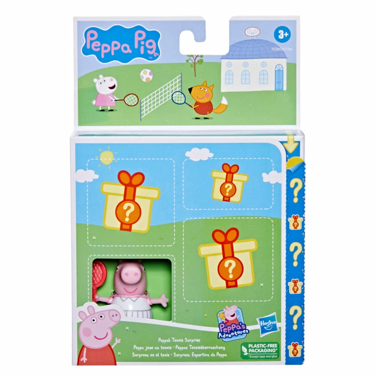 It’s a great day for a game with Peppa Pig! The Peppa’s Tennis Surprise toy is as exciting as muddy puddles! This adorable surprise pack includes a visible Peppa Pig figure all dressed to play tennis, plus 3 hidden pieces, including a mystery figure of one of Peppa’s friends and 2 sports-themed accessories. Preschoolers and Peppa Pig fans ages 3 and up will love unboxing this Peppa toy set and discovering all the storytelling fun inside.