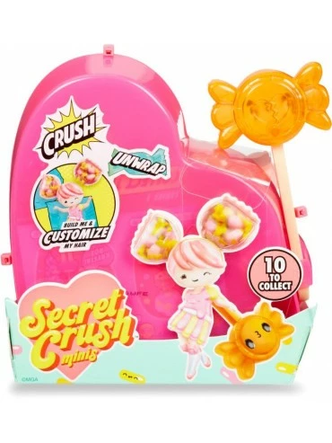 Crush into a collectible sweet surprise with Secret Crush Minis. Each doll comes in a beautiful heart package that you must crush to unbox with the included candy-themed hammer.